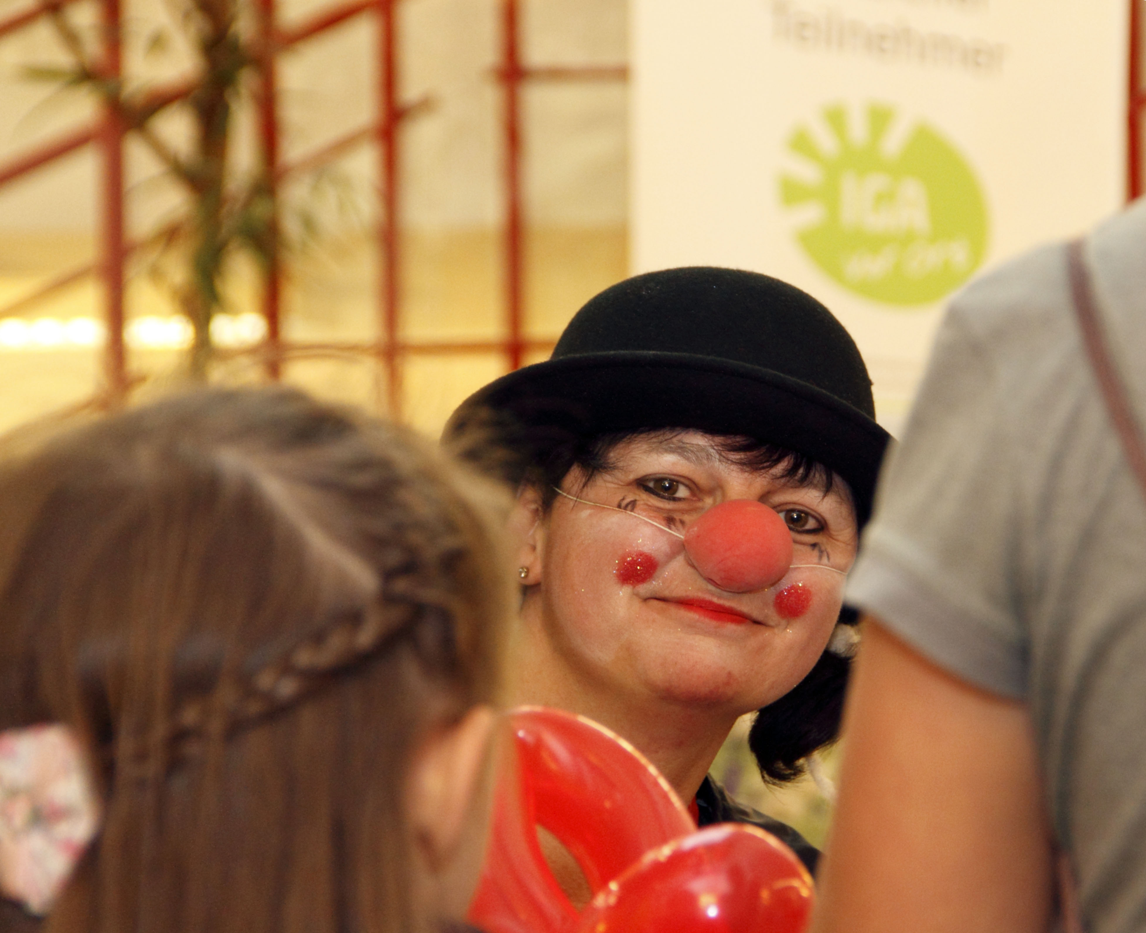 ClownIn ist Blickfang, Mittelpunkt, Magnet.